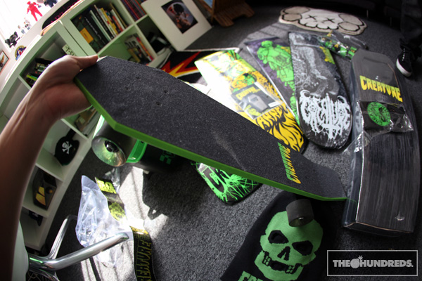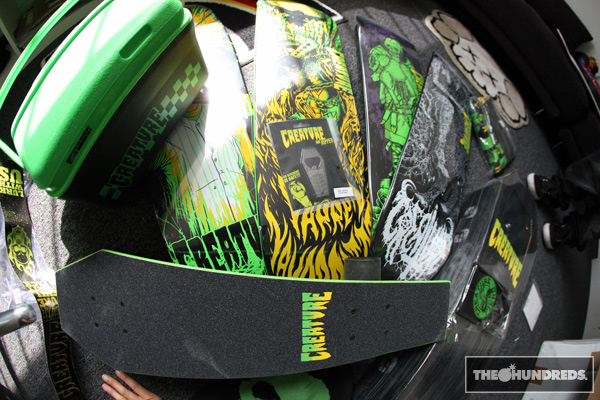 Lee (Creature) sent over one of the best boxes ever. Creature skate decks, tees, bottle openers, beanie masks, koozies, even a party cooler.